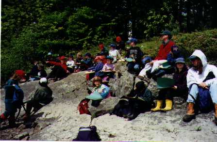 a lot of wild columbine flowers, horseshoe tracks, and a
