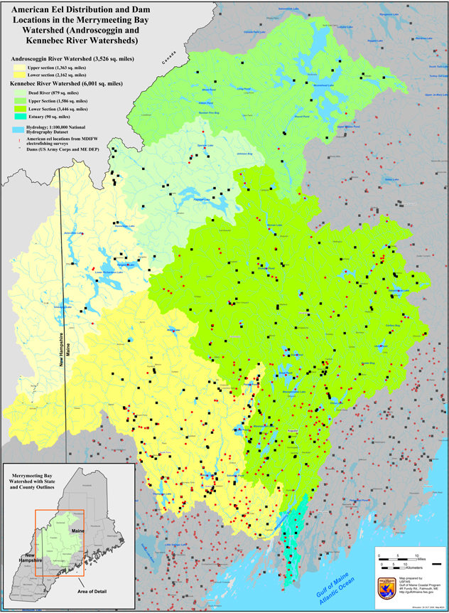 9. American Eel Distribution and Dam Locations in Merrymeeting Bay Watershed